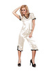 Satynowy komplet Irina firmy DKaren. Komplet składa się z koszulki z krótkim rękawem i spodni 3/4. Koszulka i spodnie uszyte z najwyższej jakości szlachetnej zwiewnej satyny. Przód, rękawy koszulki oraz dół spodni zdobi delikatna czarna koronka. Spodnie na gumce.