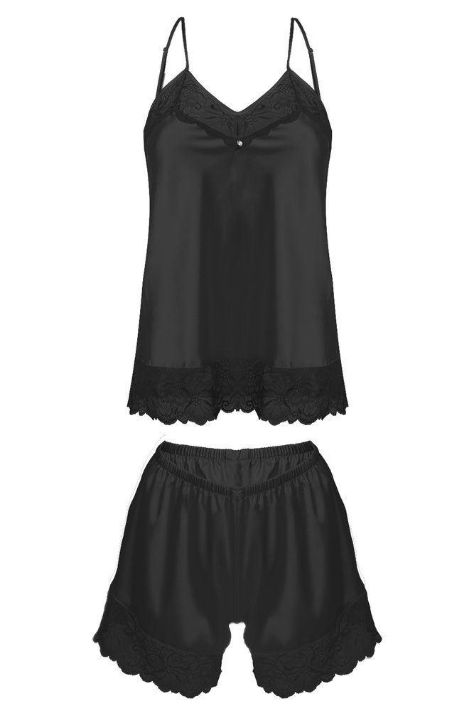 Satynowy niezwykle seksowny komplet Brenda firmy DKaren. Koszulka i spodenki ozdobione śliczną delikatną koronką. Koronka pod kolor satyny. Komplet wykonany z najwyższej jakości szlachetnej satyny.