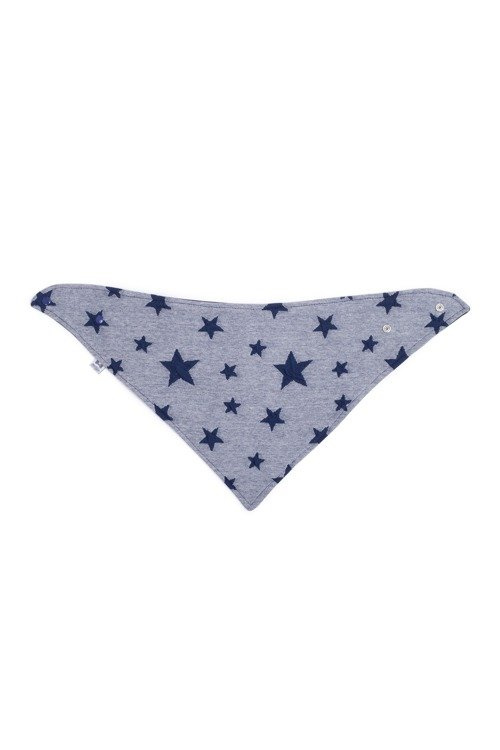 Wykonana z wysokogatunkowej bawełny, delikatna i przyjemna w dotyku chustka. Występuje w kolorze szarości, a jej elementem charakterystycznym jest wzór w gwiazdki. Chustka zapinana z tyłu na napę. Ten mały dodatek bardzo dobrze chroni szyję dziecka podczas spacerów.