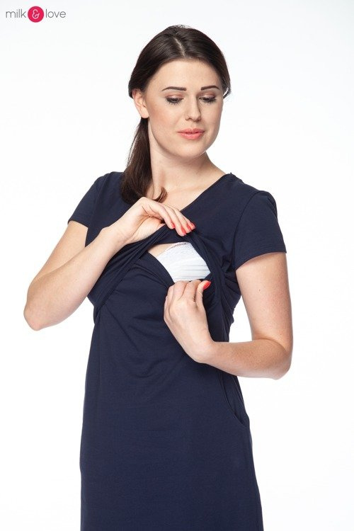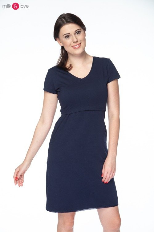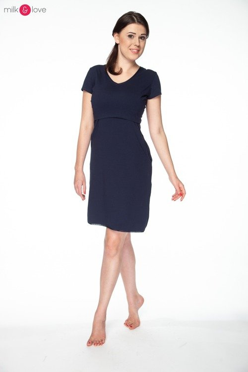Koszula nocna ciążowa i do karmienia Day & Night Milk&Love granatowa krótki rękaw