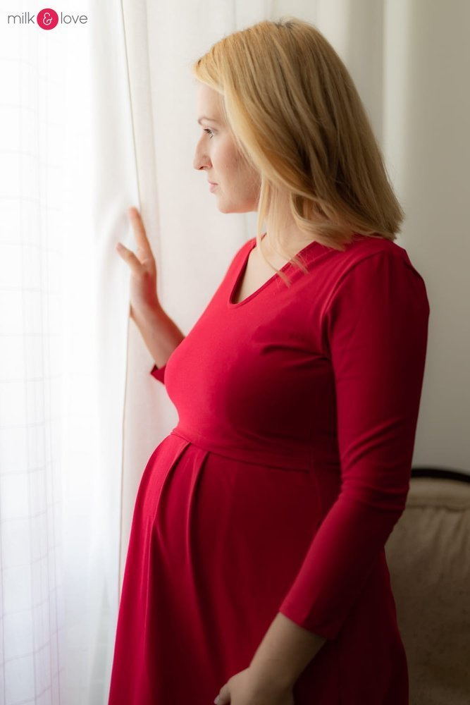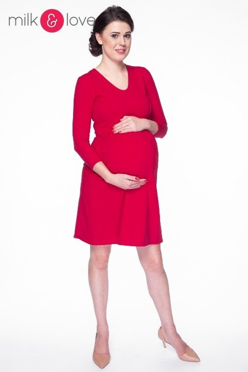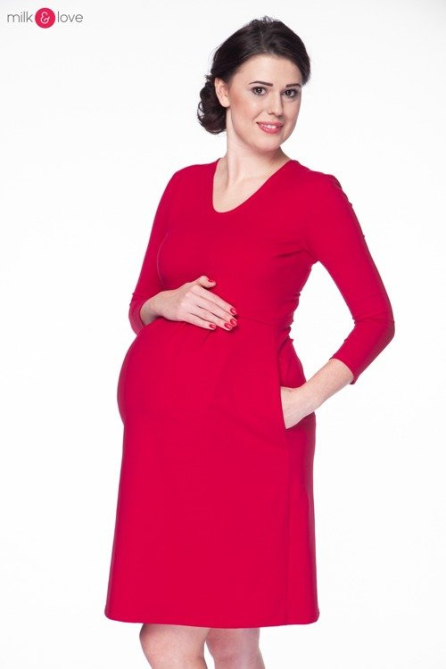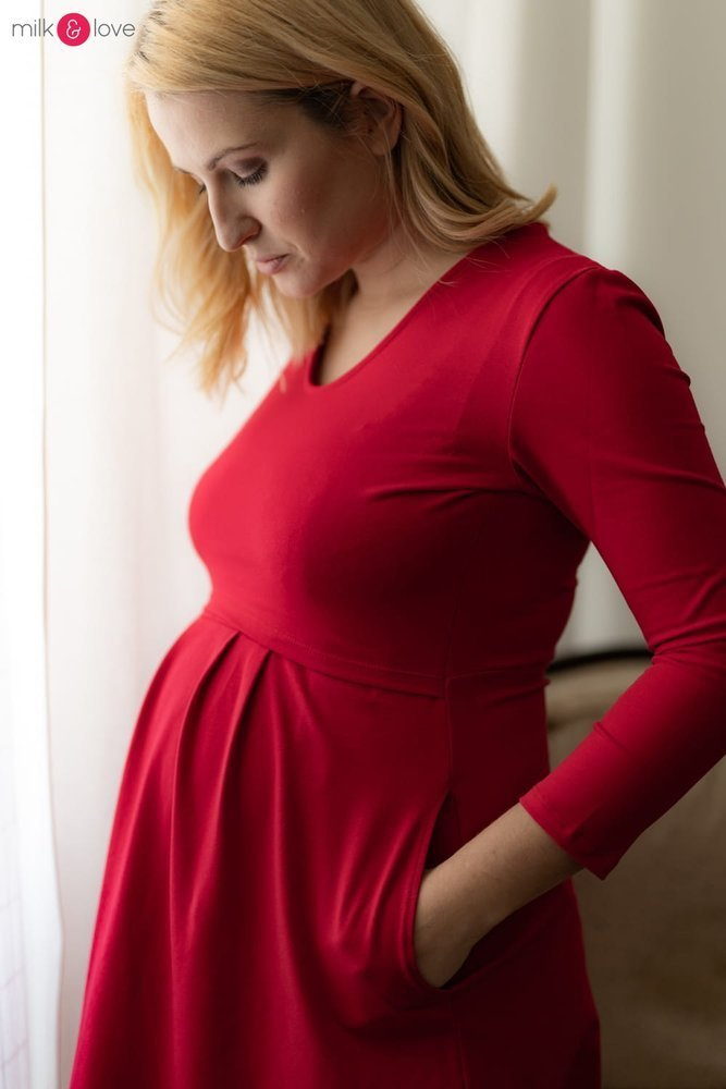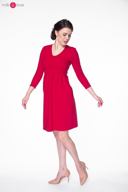 Sukienka ciążowa i do karmienia Carry rękaw 7/8 Milk&Love karminowa czerwień