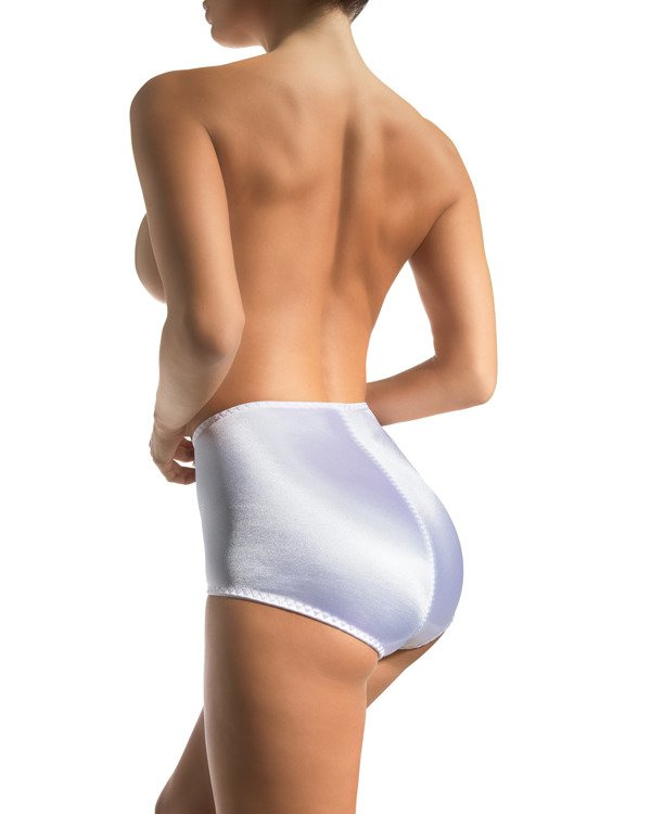 Figi z wyższym stanem, zabudowane na biodrach. Korygują figurę - mocno spłaszczają brzuch, podkreślają linię talii. Gładkie figi z połyskującej tkaniny.