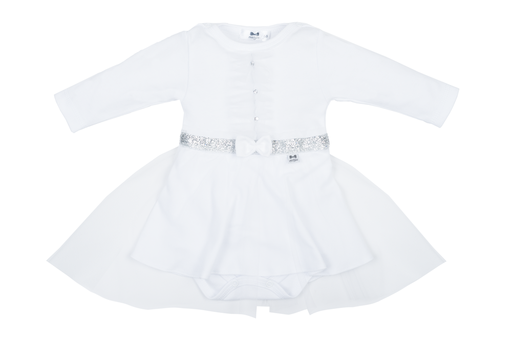 114B Little Star Sukienko-body długi rękaw Marija - biały/srebrny