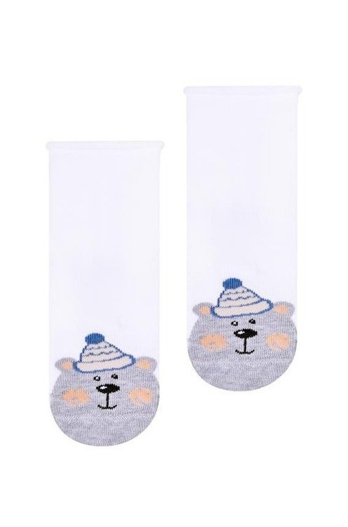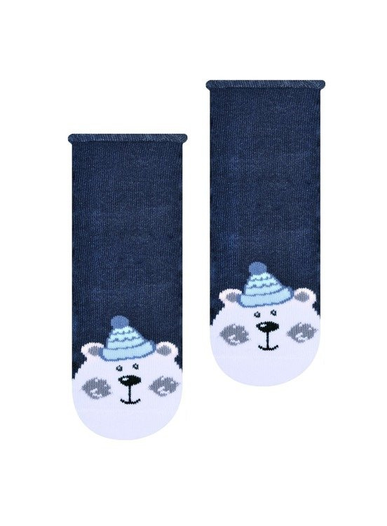 Wygodne i miękkie skarpety dziecięce z zabawnymi, zimowymi motywami. Zakończone wygodnym nieuciskającym ściągaczem.