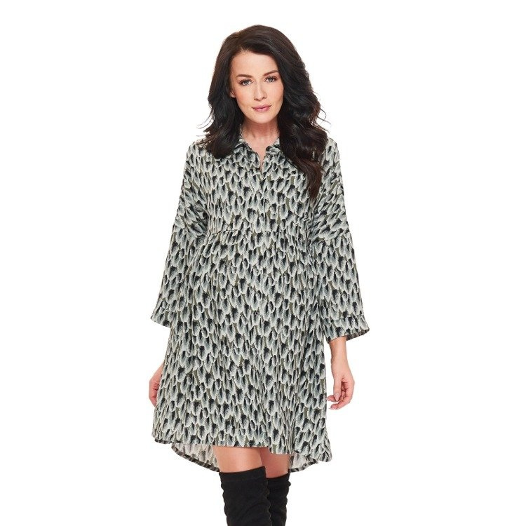Koszulowa sukienka,która doskonale wpisuje się w najnowsze trendy. Rozkloszowany krój oraz odcięcie pod biustem sprawiają, że sukienka dostosowuje się do rosnącego brzuszka. Przewiewny oraz bardzo delikatny, materiał oraz niedrapiące szwy gwarantują komfort użytkowania. Sukienkę możesz wykorzystywać także po ciąży – górna, zapinana na guziczki, część ułatwia wygodne i dyskretne karmienie piersią. Kobieca, zwiewna sukienka ciążowa, która nie krępując ruchów, pozwoli Ci pięknie wyglądać na każdym etapie ciąży i po porodzie.