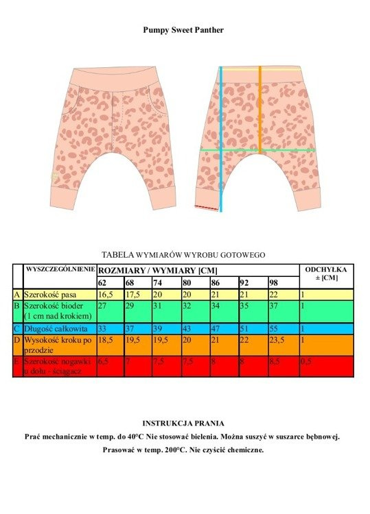 Bardzo przyjemne w użytkowaniu pumpy wykonane ze 100% bawełny. Odpowiedni krój gwarantuje swobodę ruchu, a szerokie ściągacze w pasie i przy kostkach zapewniają komfort i stabilizację na ciele dziecka. Po obu stronach znajdują się małe kieszonki.