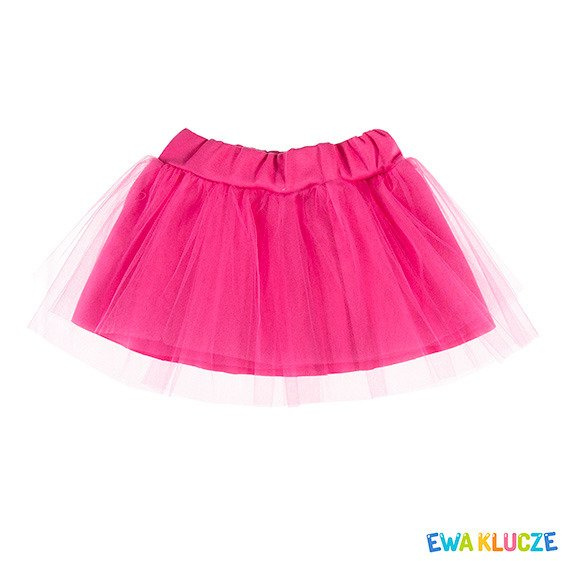 Spódnica z kolekcji "Cosmos" uszyta z miękkiej i przyjemnej w dotyku różowej dzianiny i tiulu. W pasie znajduje się guma nie uwierająca brzuszka dziecka.