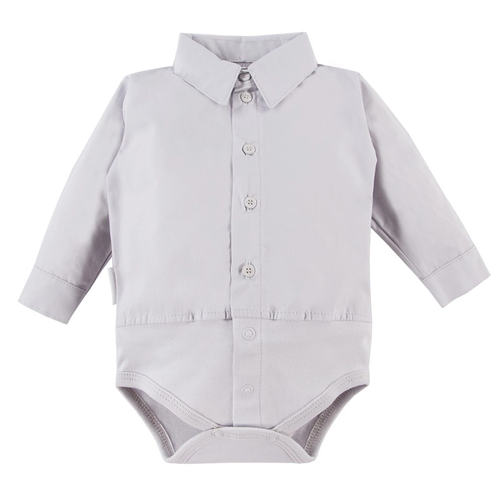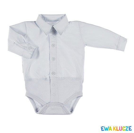 Body chłopięce koszulowe z długim rękawem z kolekcji "Ceremony" uszyte z miękkiej i przyjemnej w dotyku tkaniny. Dół body wykonany jest z dzianiny. Część tkaninowa jest zapinana na guziczki. Na części dzianinowej znajdują się praktyczne napki. Krój umożliwia całkowite rozpięcie, przez co ubranko jest funkcjonalne i wygodne. Dół body wykończony jest miękką lamówką. Napki użyte w naszych wyrobach nie zawierają niklu. Wyprodukowane w Polsce, posiadają certyfikat "Bezpieczny dla dziecka".
