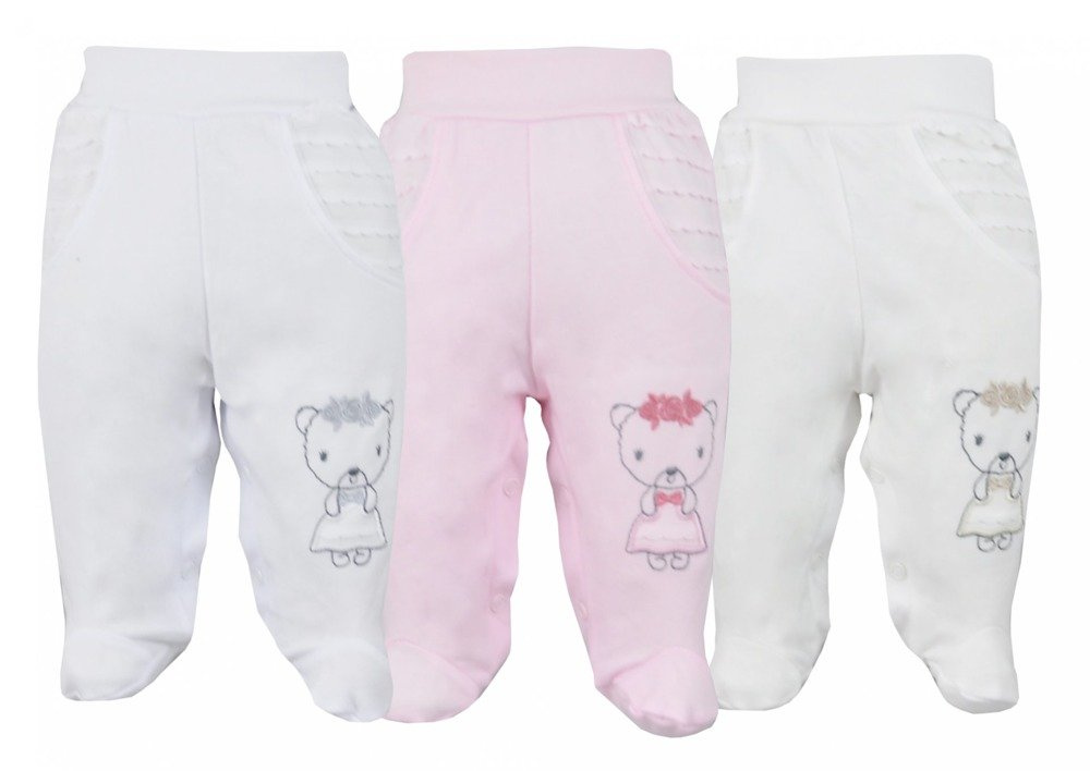 Nogawki zakończone pełnymi stópkami.