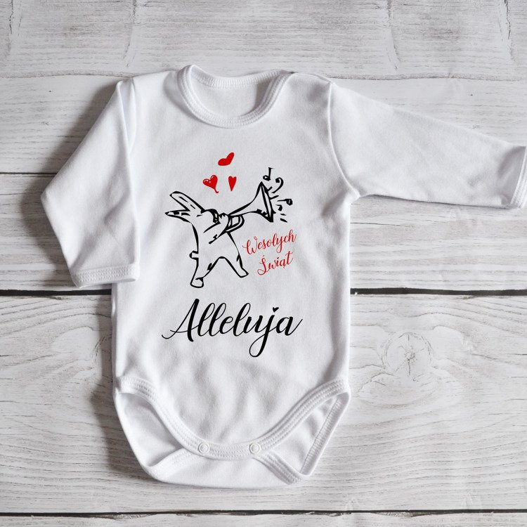 Body długi rękaw "Wesołych Świąt Alleluja" Moocha białe