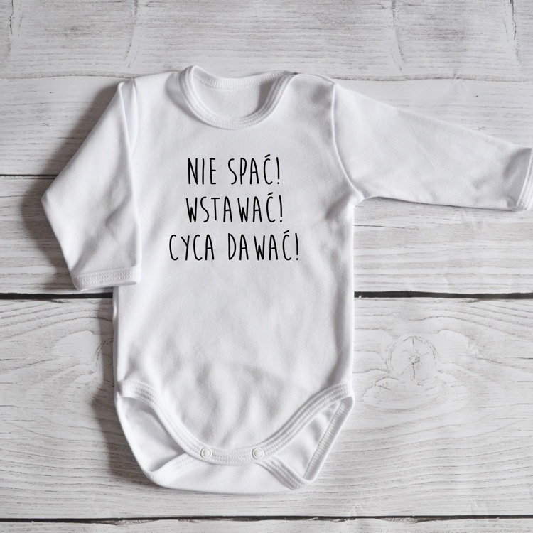 Body długi rękaw "Nie spać! Wstawać! Cyca dawać!" Moocha białe