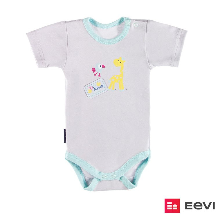 Body dziewczęce z krótkim rękawem z kolekcji "Sawanna" uszyte z miękkiej i przyjemnej w dotyku dzianiny. Druki wykonane są farbami ekologicznymi. Krój umożliwia całkowite rozpięcie, przez co ubranko jest funkcjonalne i wygodne.