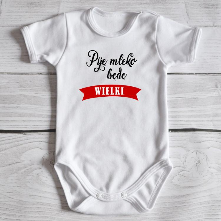 Body krótki rękaw "Piję mleko będę wielki" Moocha białe