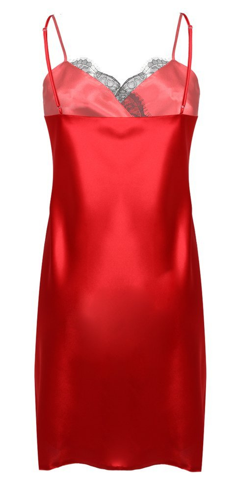 Koszulka wykonana z zwiewnej satyny. Trójkątne miseczki z satyny zmysłowo eksponują dekolt. Całość uzupełnia koronka która jest podszyta pod biustem oraz na miskach. Ramiączka cienkie, regulowane.