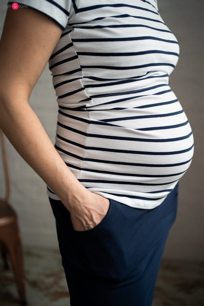 Spódnica ciążowa z kieszeniami to idealna baza do ciążowych stylizacji. Można ją nosić na co dzień z trampkami, z balerinami na niezobowiązujące spotkania i do szpilek na większe wyjścia. Miękka dzianina nie powoduje ucisku oraz daje swobodę ruchu. Niski pas typu "jodełka" jest niezwykle wygodny, bo nie podrażnia skóry na brzuchu, która staje się szczególnie wrażliwa w ciąży. To najlepsze rozwiązanie na cieplejsze, wiosenno-letnie dni.