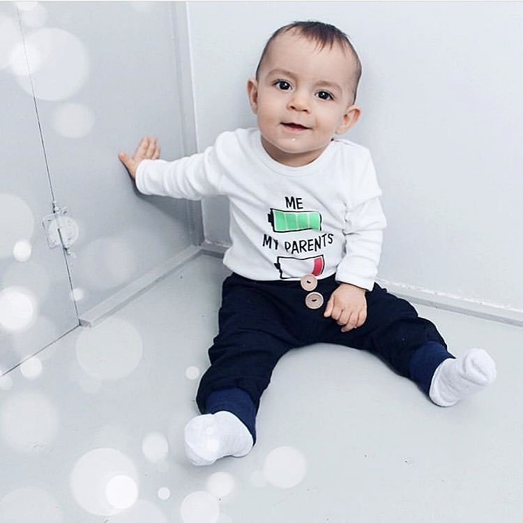 Oryginalne body ozdobione na froncie nadrukiem "Me/ My parents". Ubranko rozpinane jest na lewym ramiączku oraz w kroczku za pomocą bezniklowych nap, a kołnierzyk został wykończony łagodną lamówką. Body będzie się doskonale prezentować w wielu codziennych stylizacjach.