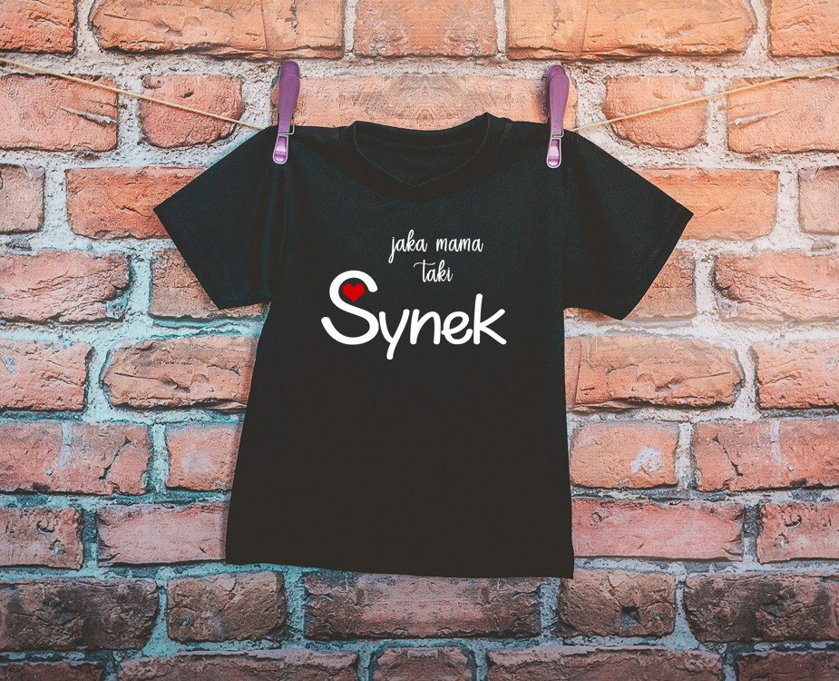Koszulka dziecięca krótki rękaw "Jaka Mama taki Synek" Moocha czarny