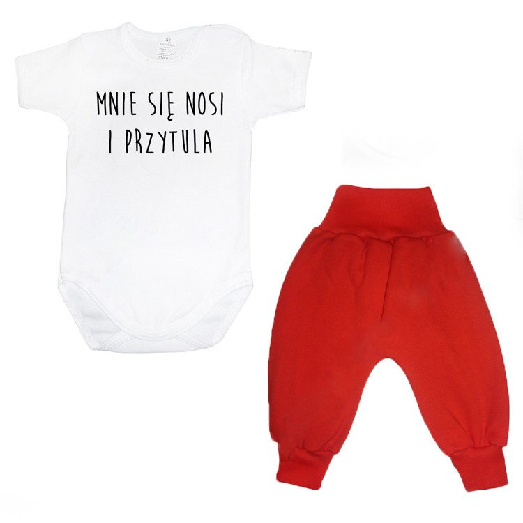 Zestaw body krótki rękaw+spodenki "Mnie się nosi i przytula" Mooch czerwony