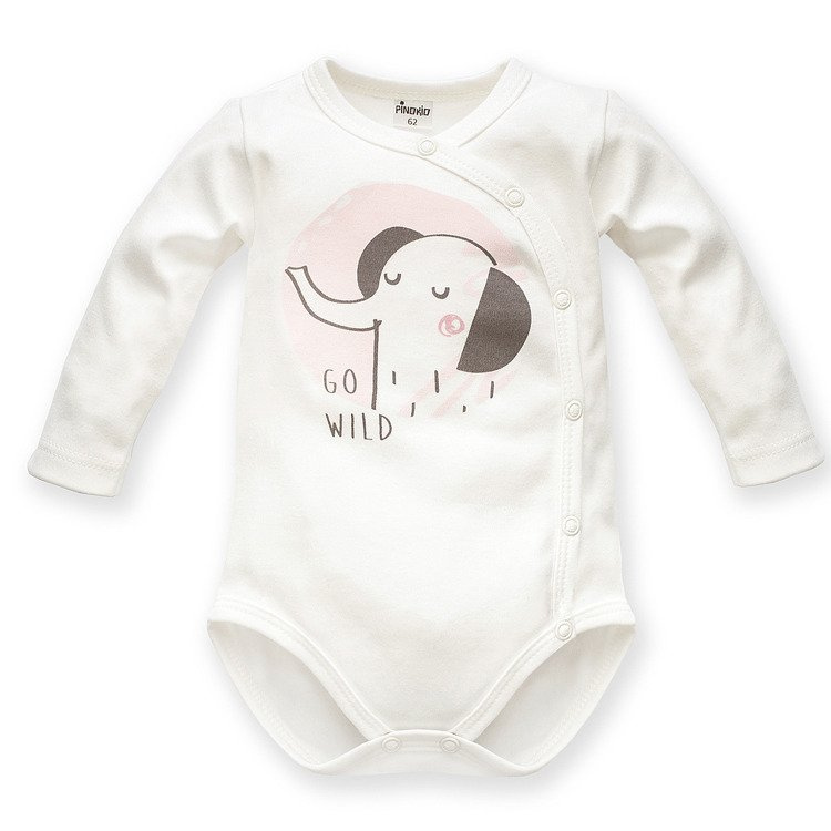 Body rozpinane z długim rękawem "WILD ANIMALS" - ecru różowy