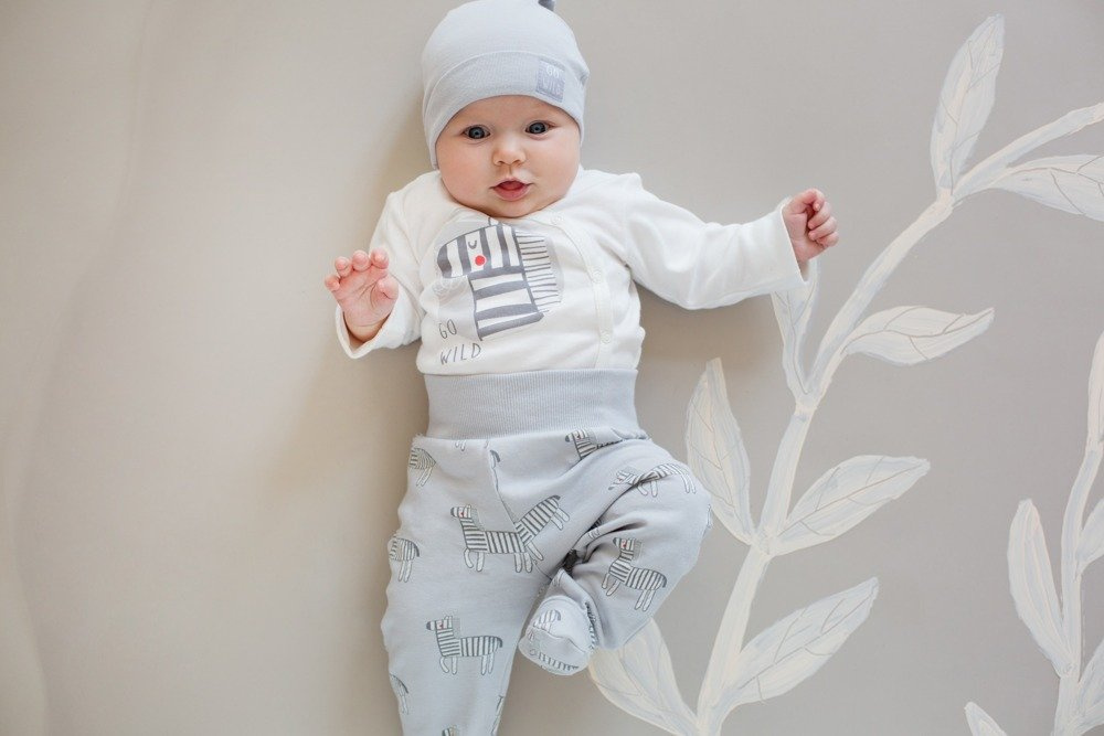 Body rozpinane z długim rękawem "WILD ANIMALS" - ecru szary