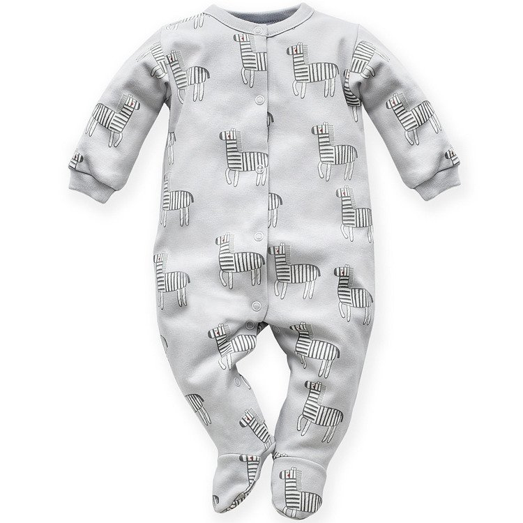 Bawełniany pajac w trzech wariantach kolorystycznych z motywem zwierzątek. Możliwość całkowitego rozpięcia umożliwia łatwe i szybkie ubieranie dziecka. Dodatkowy klin w kroku i stopery nad pietami zapewniają swobodę użytkowania i nie krepują ruchów dziecka.