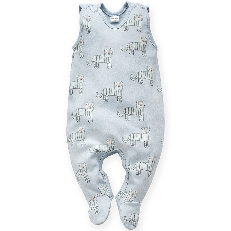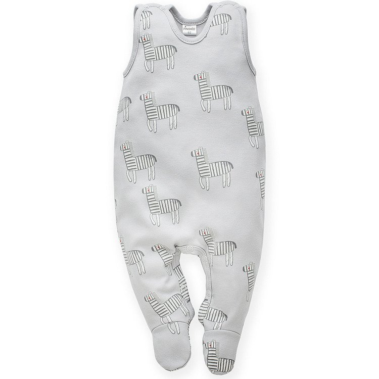 Śpiochy z miękkiej dzianiny bawełnianej. Zapięcia na bezniklowe napy na ramionach i w kroku zapewniają maksymalną wygodę użytkowania.
