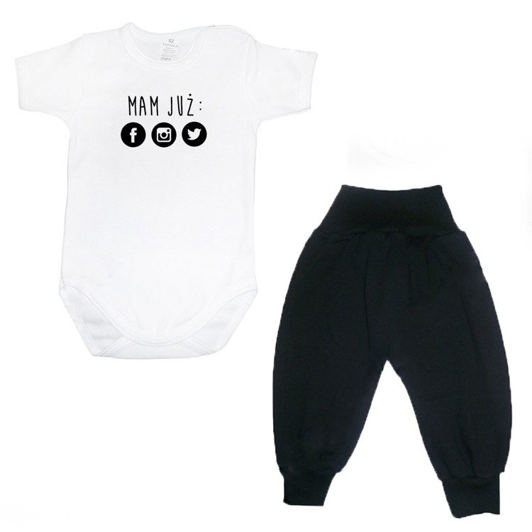 Zestaw body krótki rękaw+spodenki "Social media" Moocha czarny