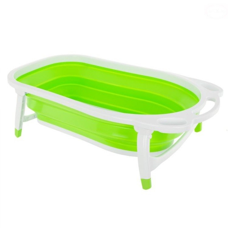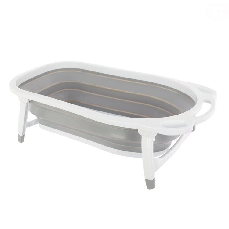 Silikonowo-Plastikowa wanienka wykonana z plastiku PP, miękkie dno zapewnia komfort dziecku podczas kąpieli. Antypoślizgowe nóżki połączone pałąkiem stabilizującym wanienkę, zapewniają bezpieczeństwo. Wanienkę można wieszać na uchwycie, który w czasie kąpieli może służyć za miejsce powieszenia ręcznika. Nóżki chowają się przy pomocy przycisków zwalniających. Dno wanienki dostosowywane wedle potrzeby poprzez docisk ręką. Wanna posiada korek spustowy. Łatwa do przechowywania, idealna w podróży.