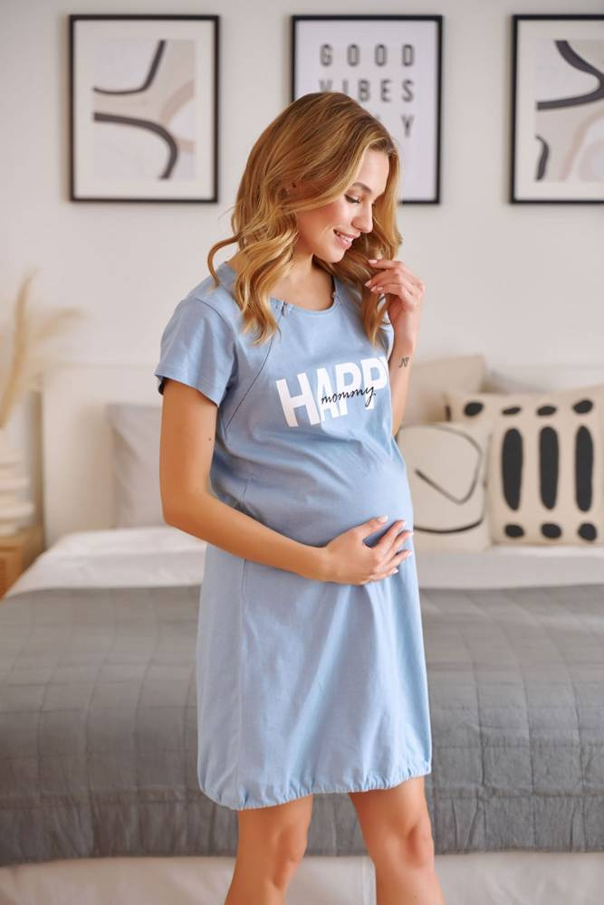 Koszula nocna 9504 to niezastąpiony element garderoby każdej przyszłej mamy. Zaprojektowana z myślą o wygodzie w ciąży oraz komfortowym karmieniu po porodzie. Posiada funkcjonalne, ukryte zamki przy dekolcie, które pozwalają w dyskretny sposób nakarmić dziecko – nawet w nocy. Dzięki ściągaczowi na dole możesz łatwo dopasować fason do zmieniającej się sylwetki. Wykonana w 100% z miękkiej i oddychającej bawełny – idealna dla delikatnej skóry. Kieszenie boczne i napis z przodu nadają jej casualowy, młodzieżowy styl. Doskonały wybór na każdą porę roku.