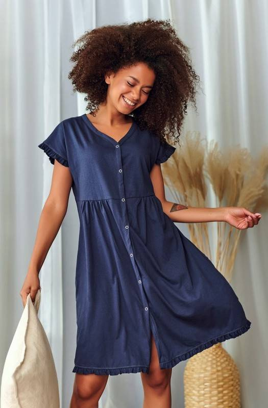 Kobiety w ciąży i karmiące mamy mają wyjątkowe potrzeby, także te dotyczące bielizny. Ważne by w tym szczególnym okresie życia czuły się nie tylko komfortowo, lecz także atrakcyjnie. Niezwykle komfortowa i przy tym urocza koszula nocna. Model z krótkim rękawem. Dekolt okrągły z wygodnym zapięciem na napy. Dół zakończony uroczą falbanką. Koszula wykonana jest z wysokiej jakości, przyjemnej w dotyku bawełniany organicznej. Doskonale sprawdzi się w ciąży, a także przy karmieniu maleństwa.