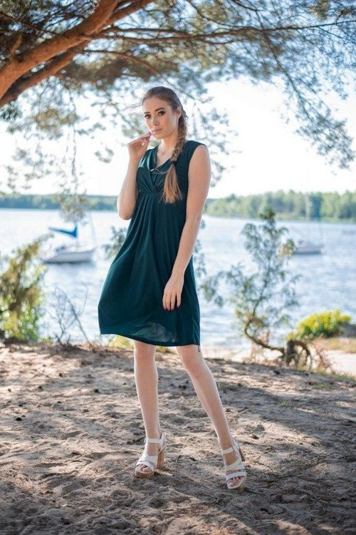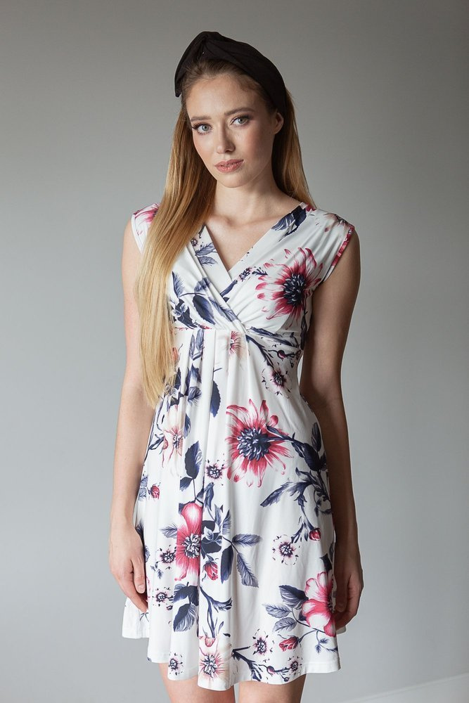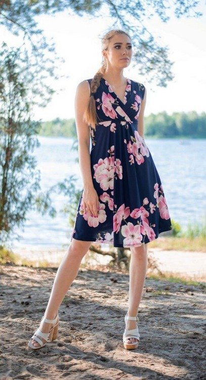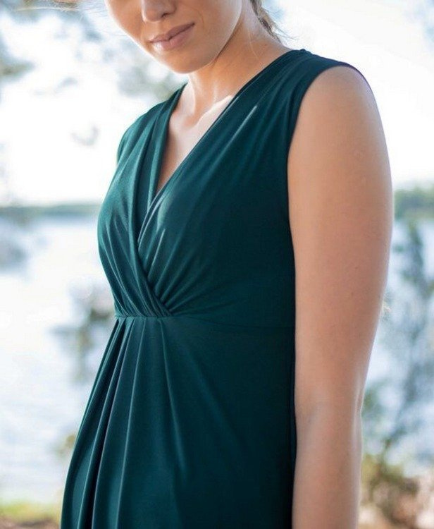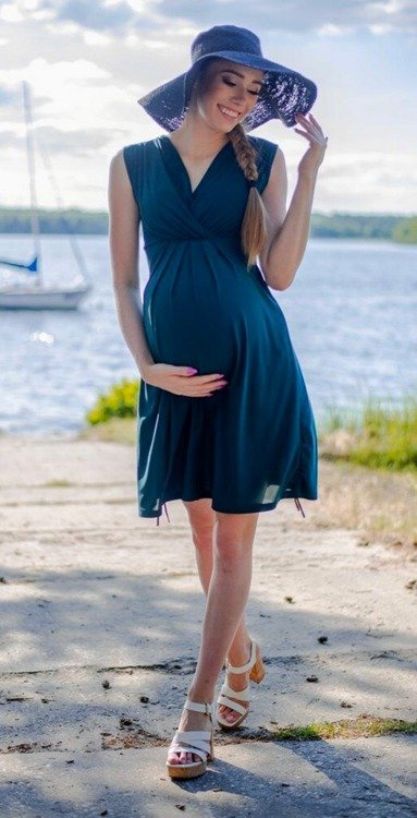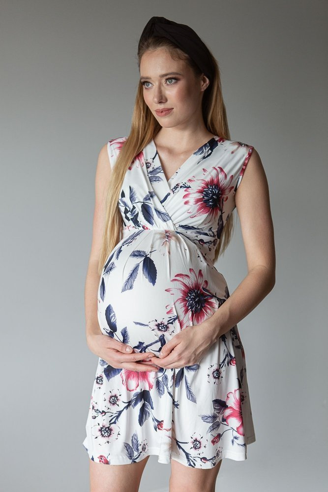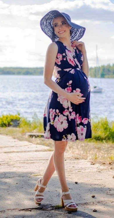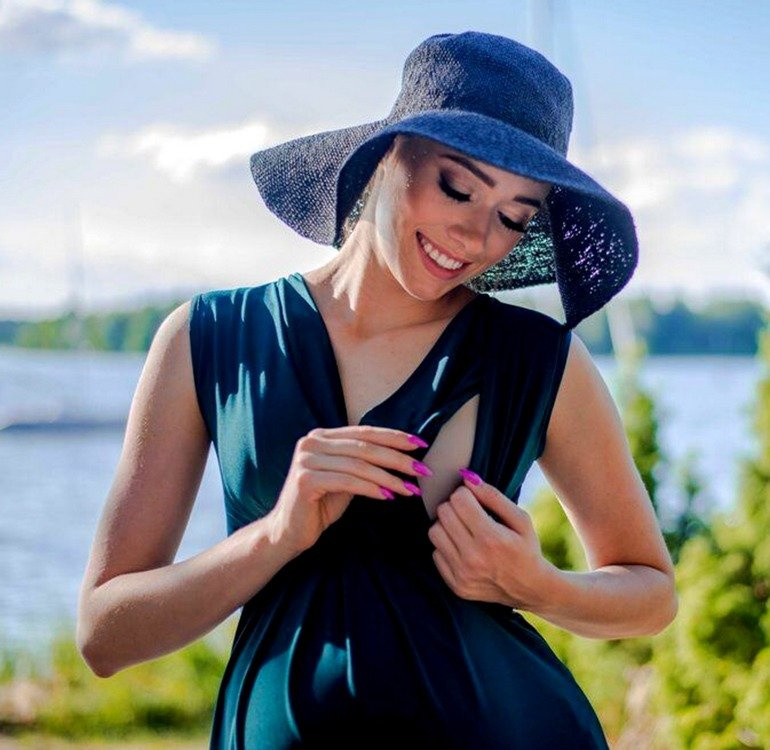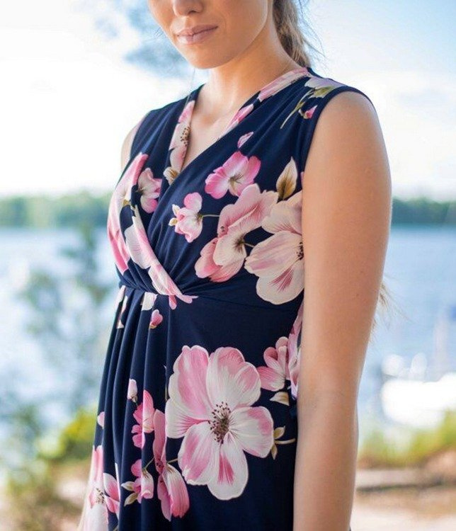 Zwiewna sukienka bez rękawów nadaje się dla każdego. Zarówno kobiety w ciąży , karmiące piersią jak i kobiety które ciąże mają już za sobą lub ją dopiero planują świetnie będą wyglądać w tej sukience. Rozkloszowany krój sprawia że sukienka na ciążowym brzuchu świetnie się układa, nie krępuje ruchów i nie opina się. Krój sukienki przystosowany jest do wygodnego karmienia piersią.