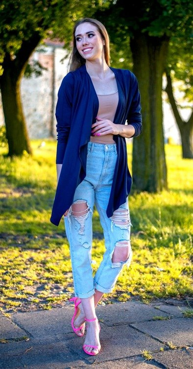 Cienki kardigan, idealny na chłodniejsze dni i wieczory.