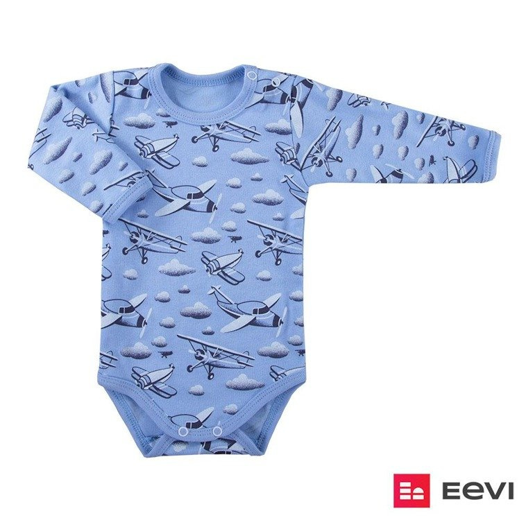 Body chłopięc z długim rękawem z kolekcji "Sky" uszyte z miękkiej i przyjemnej w dotyku dzianiny. Druki wykonane są farbami ekologicznymi. Krój umożliwia całkowite rozpięcie, przez co ubranko jest funkcjonalne i wygodne.