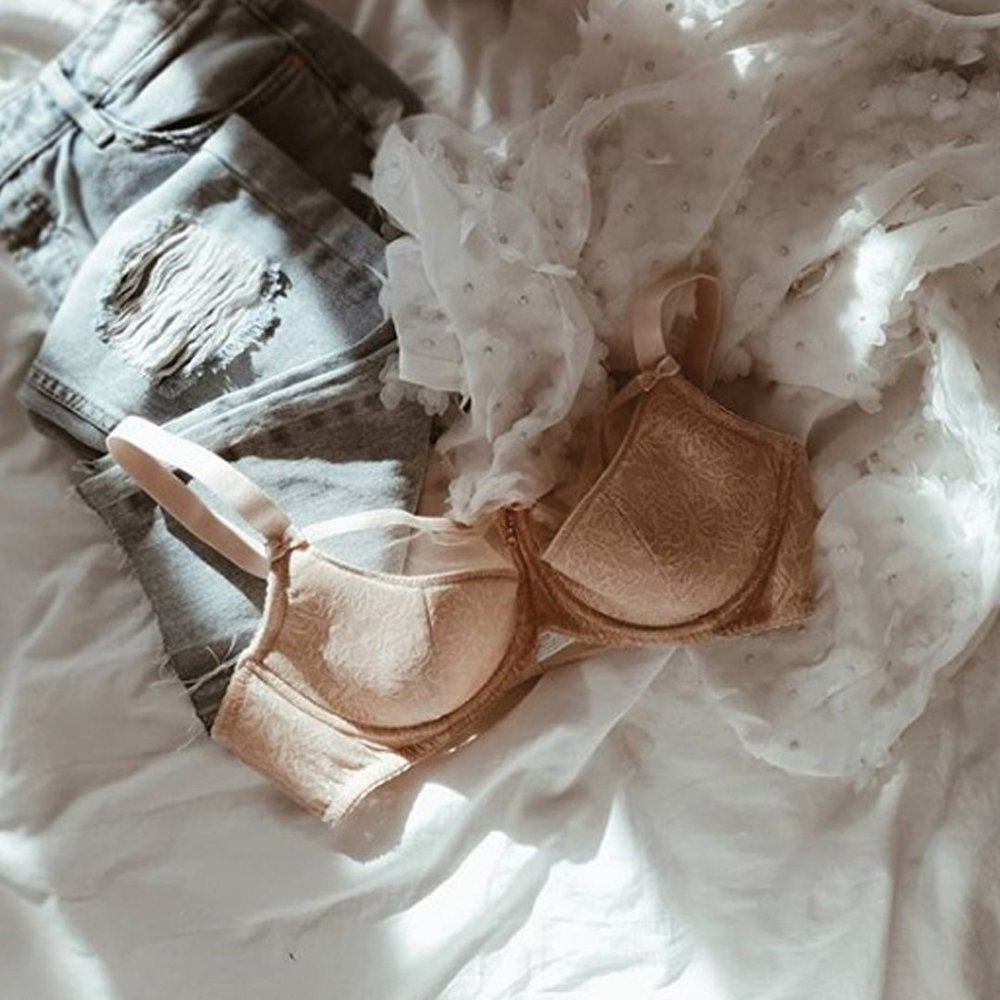 Seksowny pół-usztywniany biustonosz na fiszbinach w kolorze ponadczasowego beżu.