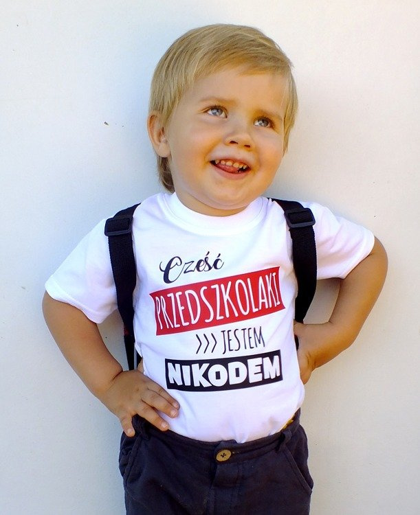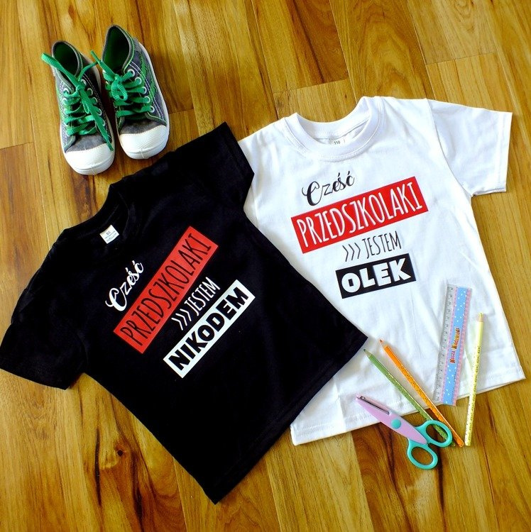 Koszulka dziecięca krótki rękaw "Cześć PRZEDSZKOLAKI z imieniem" Moocha czarny