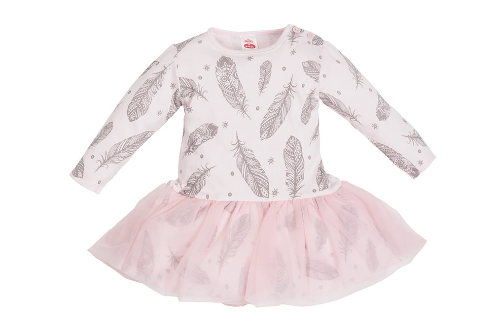 Elegancka sukienka z nadrukiem piórek dla małych dam.