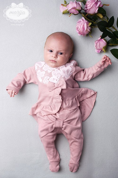 Mięciutka i wygodna tunika w kolorze różowym, ozdobiona koronką i kokardką.