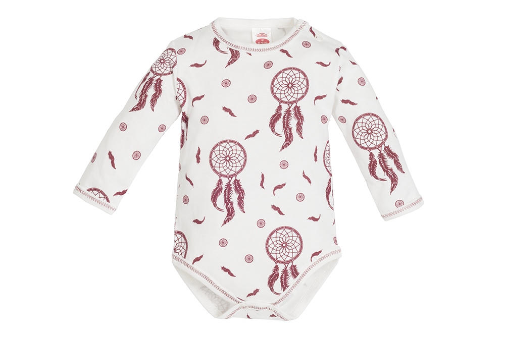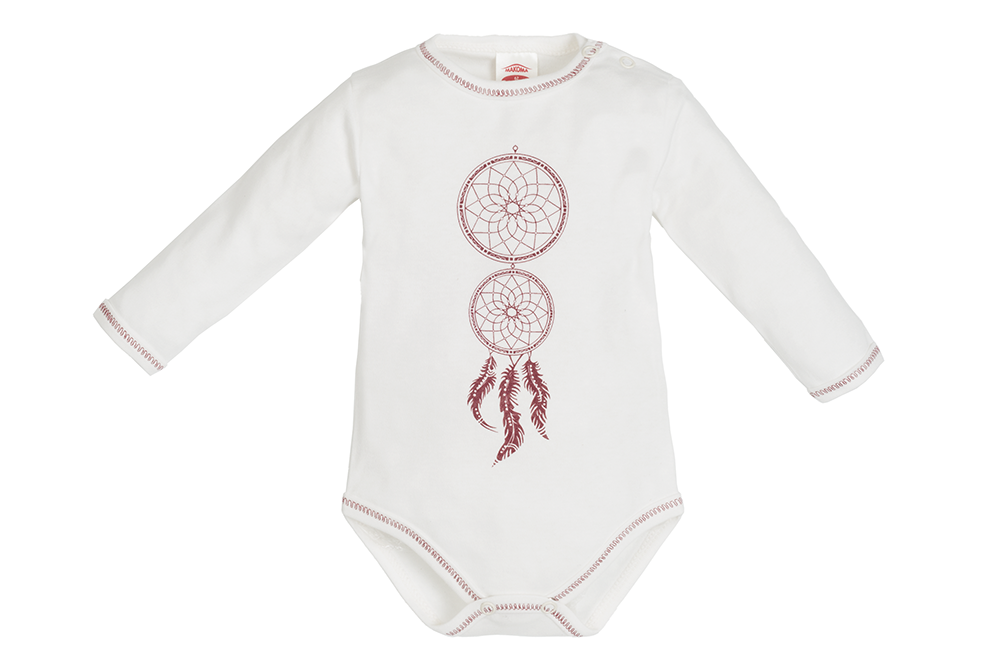 Wykonane z mięciutkiej bawełny. W kolorze białych z bordową aplikacją łapacza snów.