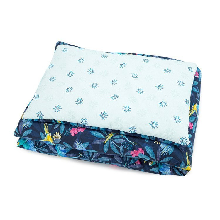 Poduszka jest płaska i wygodna, a kołderka mięciutka i puszysta. Pościel ma wszyte wypełnienie, pierze się ją w całości, a nie tylko jej wierzchnią część, co jest idealnym rozwiązaniem szczególnie dla alergików.