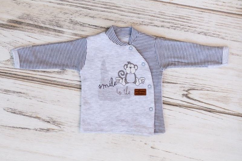 Kaftanik Monkey dzięki swojej prostocie i delikatności daje wrażenie radosnej lekkości. Wykonany został ze 100% bawełny, dzięki czemu gwarantuje najwyższy komfort noszenia. Jego kopertowy krój ułatwia ubieranie maluszka, a najwyższej jakości materiał gwarantuje wygodę i swobodne ruchy niemowlaka oraz odpowiednią termoregulację.