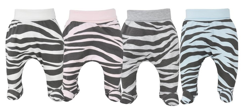 Nogawki zakończone pełnymi stópkami.