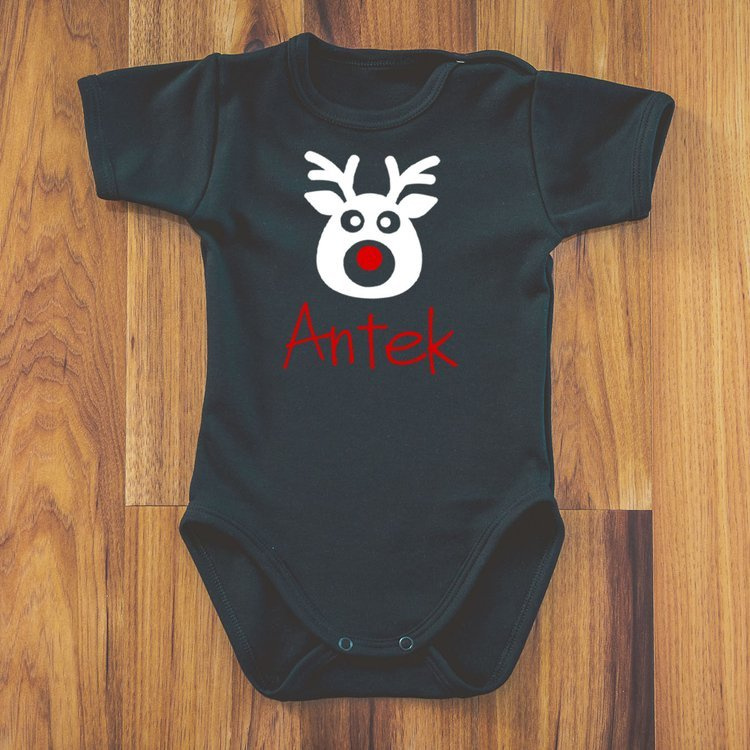 Body krótki rękaw " Reniferem z imieniem" Moocha czarny