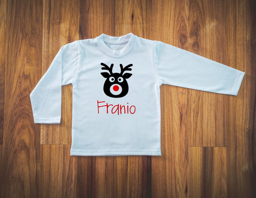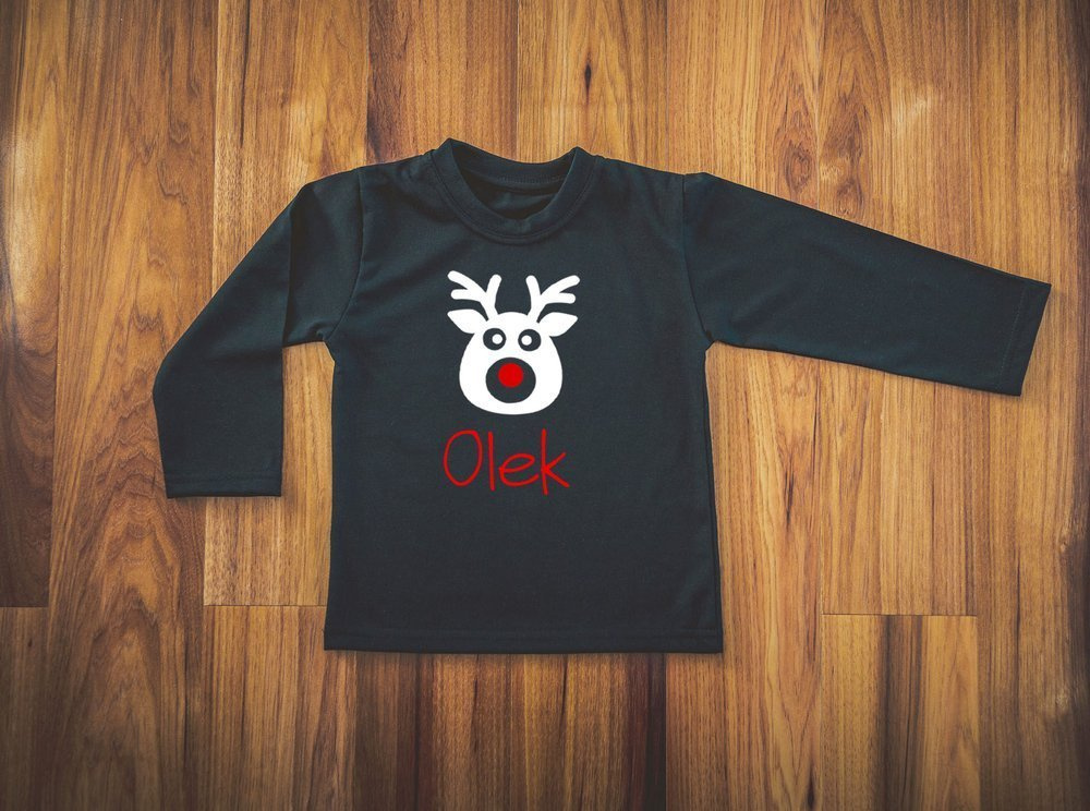 Koszulka dziecięca długi rękaw "Reniferem z imieniem" Moocha czarny