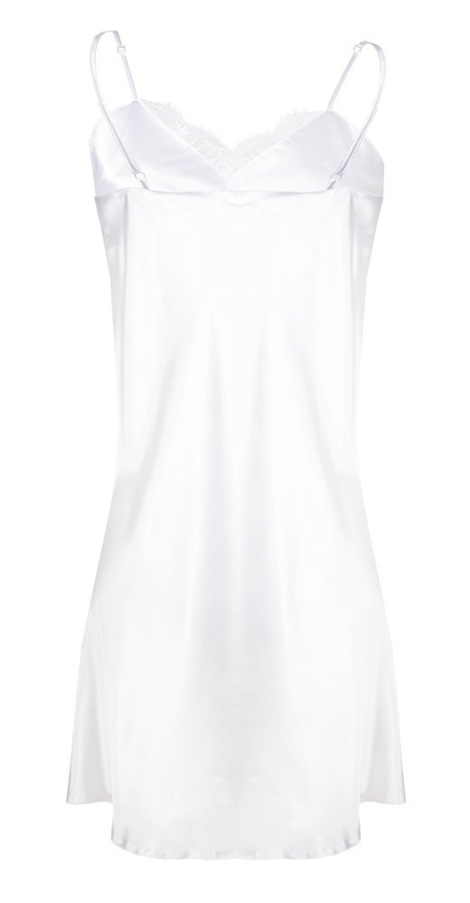Koszulka wykonana z zwiewnej satyny. Trójkątne miseczki z satyny zmysłowo eksponują dekolt. Całość uzupełnia koronka która jest podszyta pod biustem oraz na miskach. Ramiączka cienkie, regulowane.