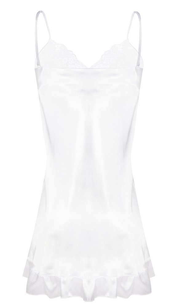 Zwiewna satynowa koszulka. Przód halki tworzą dopasowane, uszyte z koronki miseczki, które zapewniają komfort noszenia a jednocześnie zmysłowo eksponują dekolt.