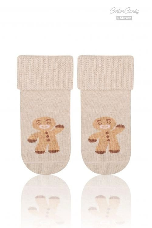 Bawełniane dziecięce skarpety frotte z wywinięty ściągaczem o tematyce świątecznej.