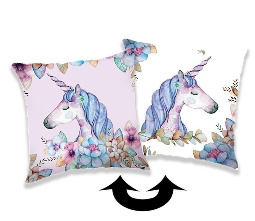 Poszewka dekoracyjna z magicznymi cekinami zmieniającymi kolor na całej przedniej stronie. Niepowtarzalny projekt, wystarczy przesunąć palcami po cekinach, a otrzymasz inny wzór koloru. Pastelowe kolory oraz bajkowe nadruki to wspaniały świat magi i czarów. Poszewka wyróżniająca się estetyką, starannością wykonania oraz piękną kolorystyką urozmaici wygląd każdego wnętrza. Druga strona wykonana z materiału gładkiego, połyskującego. Magiczna poszewka będzie wspaniałym pomysłem na prezent.