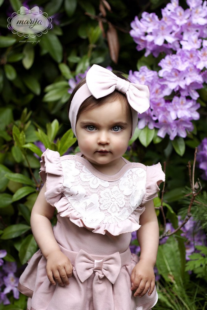 Mięciutka, opaska to efektowna ozdoba dziecięcej główki. Służyć może również jako alternatywa dla letniej czapeczki. Elementem rozpoznawalnym ubranka jest elegancka, a zarazem bardzo dziewczęca, kokarda na środku. Doskonale komponuje się z pozostałymi ubrankami z kolekcji Cherry.