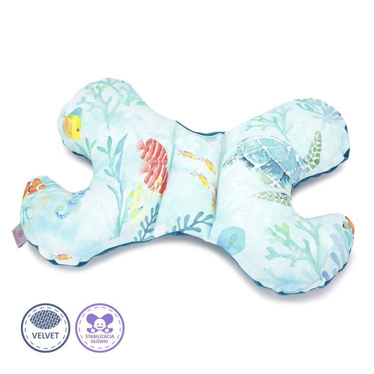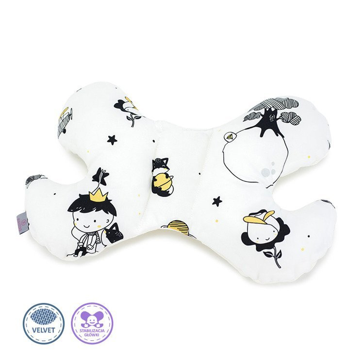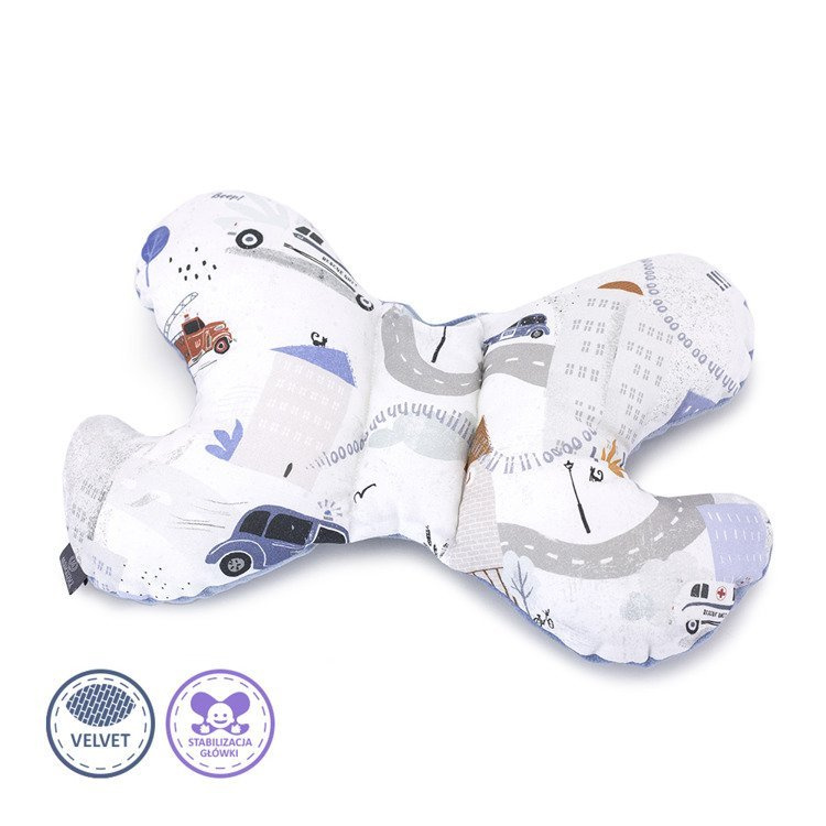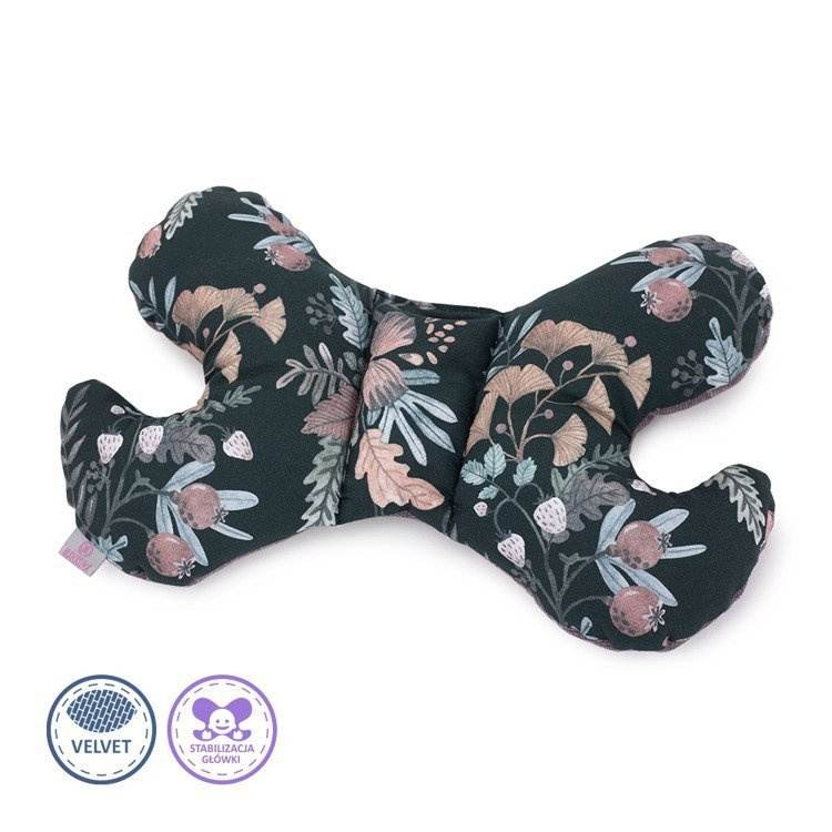 Motylek zapewnia komfort podczas podróży, niweluje wstrząsy w czasie jazdy samochodem lub wózkiem. Dzięki specjalnemu wyprofilowaniu idealnie dopasowuje się zarówno do główki dziecka, jak i do fotelika samochodowego. Motylek Makaszka umili każdą podróż i utuli zmęczonego Maluszka do snu.