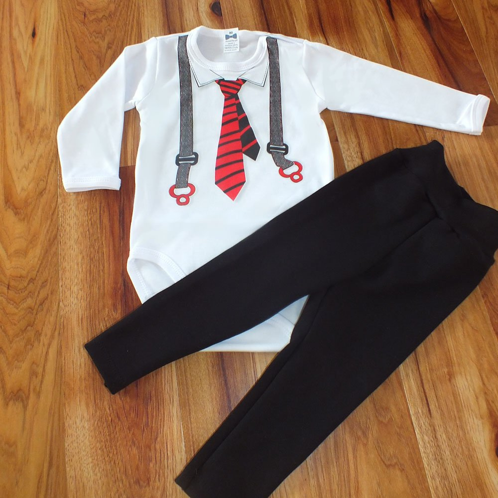 "Krawat i szelki" Elegancki komplet niemowlęcy dla chłopczyka Moocha